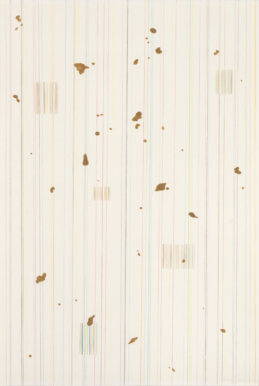 Z.T. 1997 110 x 73 cm papier, arceringen in kleurpotlood en clusters in kleurpotlood en zand,